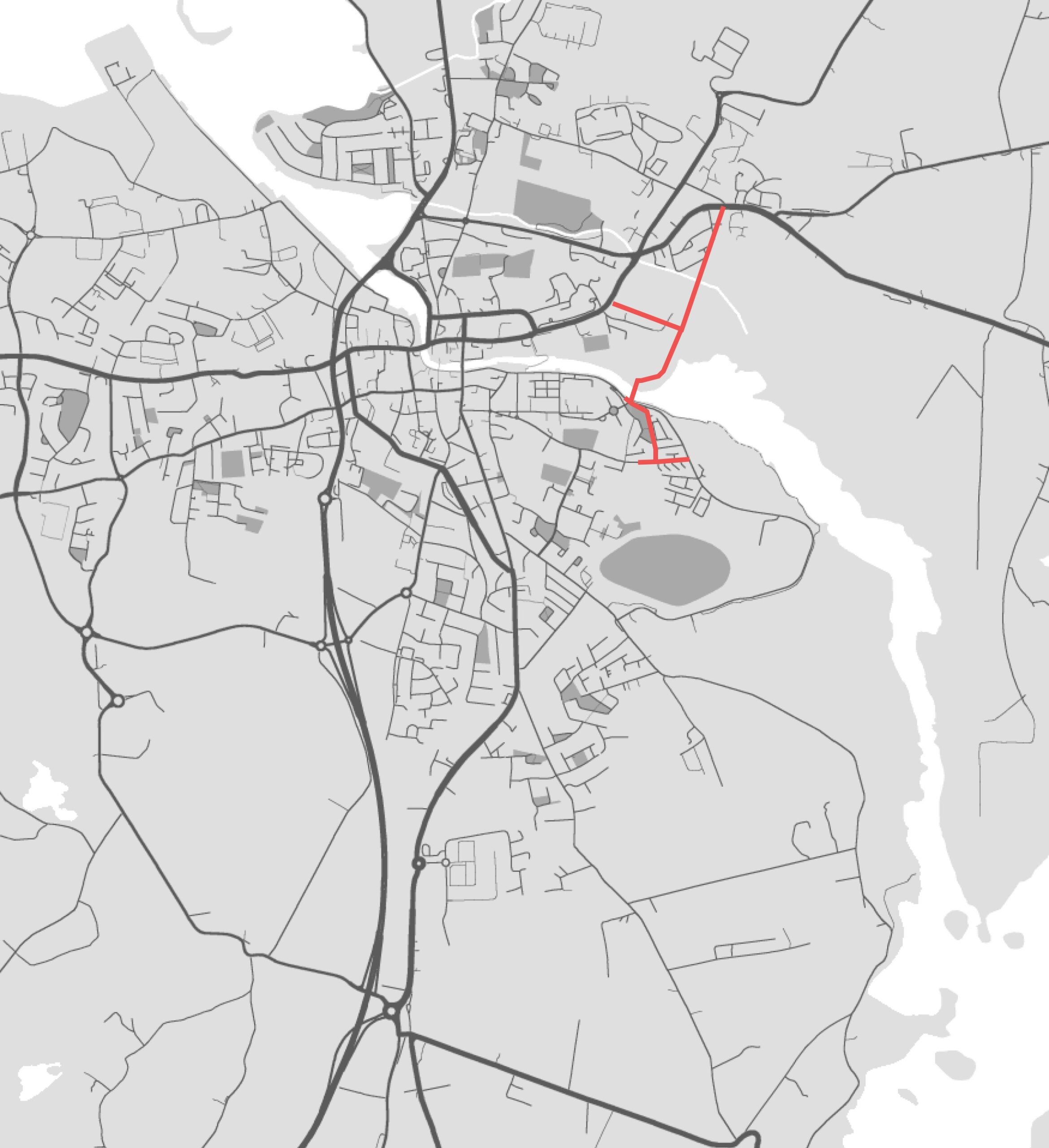 This is a bridge connecting into residential roads on the South bank of Sligo’s Garavogue river, with approximately 1.5 km of new roads on the North bank, to connect into the road network there.